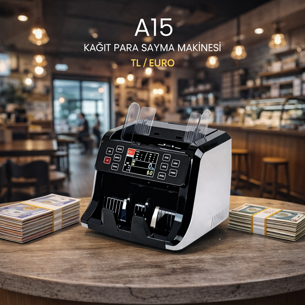 A15 TL / Euro Üsten beslemeli Kağıt Para Sayma Makinesi