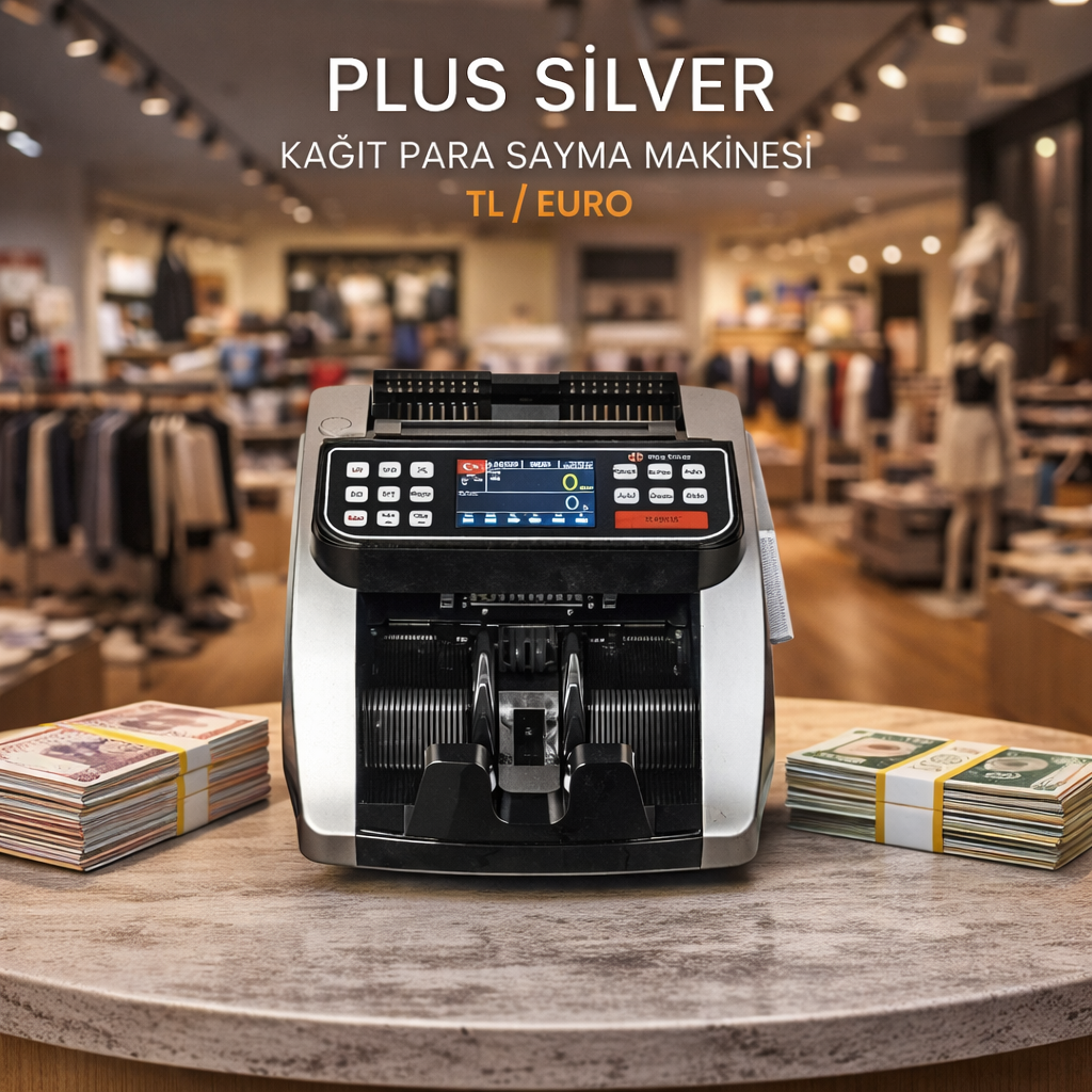 Plus Silver TL / EURO Kağıt Para Sayma Makinesi – Gri / Siyah Renk
